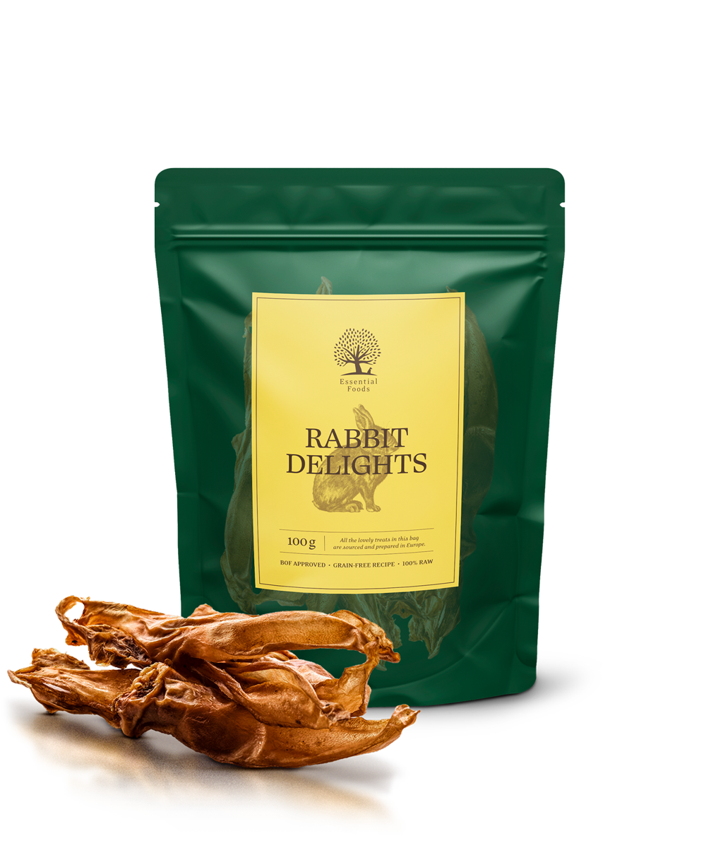 100% rabbit ears, a delicious and natural treat for dogs. Great for teeth cleaning and an excellent alternative to beef-based options.