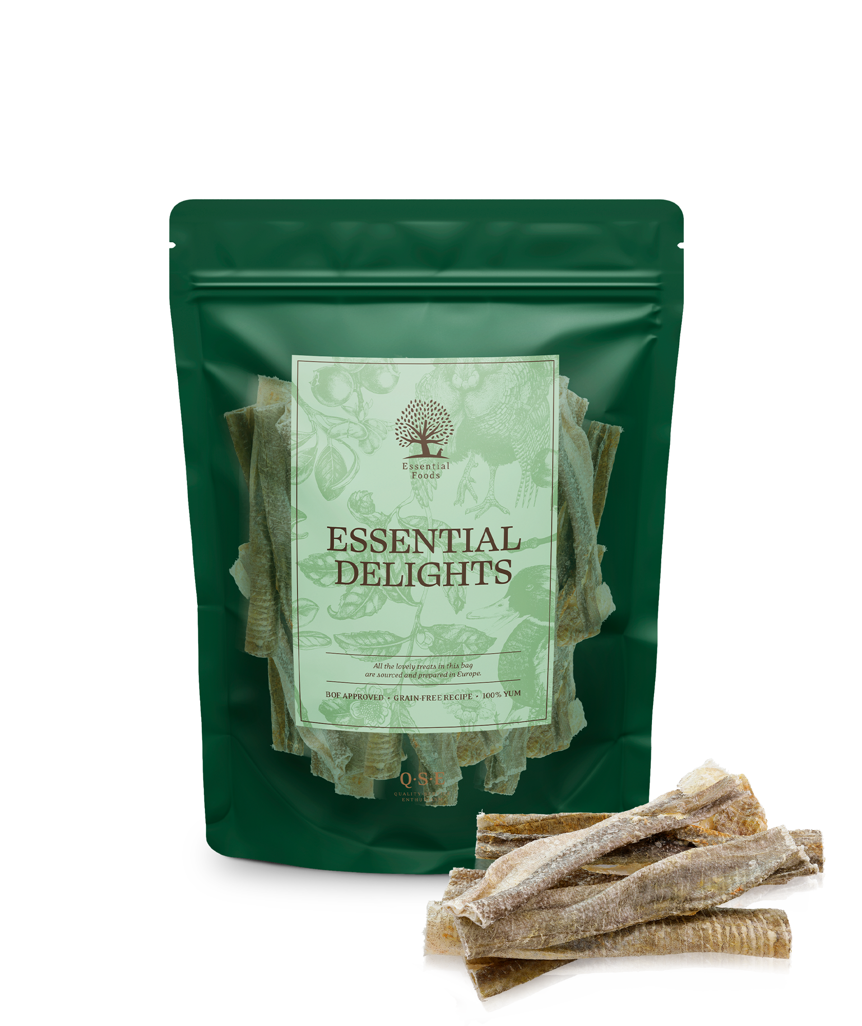 Eigentlich möchten wir Sie warnen: Halten Sie sich die Nase zu! Aber das ist nicht ganz fair, denn ESSENTIAL ICELAND FISH DELIGHTS ist ein unglaublich gesunder Snack, der allen Hunden vergönnt sein sollte. 100 % getrockneter isländischer Kabeljau Haut. Zubereitet und verpackt in der EU.